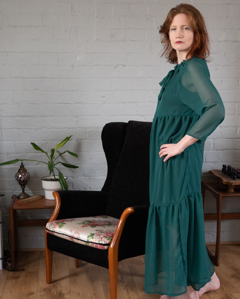 Sorry about the pun. We had a big debate at sewing club about whether it was pronounced Will-der or WILDer. I’ve gone with WILDer, correct me if I’m wrong. I’d seen a lot of really lovely ones on everyone and was getting some major FOSMO (Fear of Sewing Missing Out). I mentioned in my previous post how the one from @lesbonbecsfabuleax had inspired me so I was really wanting to make it in a green chiffon (purchased from Fabric Land). No Toile here, I jumped straight in (error)!